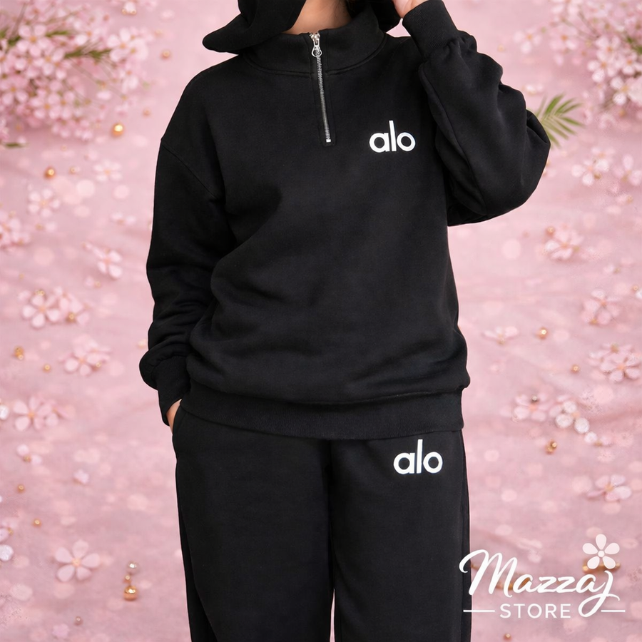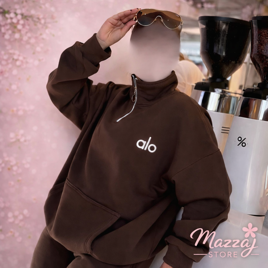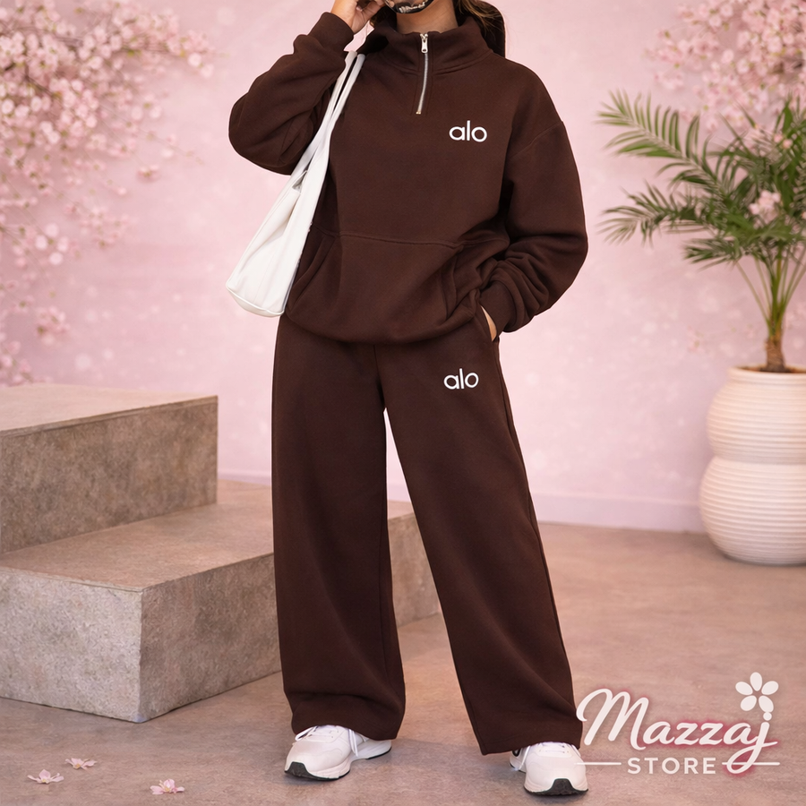 Alo Women Suit Pin21 طقم أوفر سايز شتوي شيك جدًا، معمول علشان يخلي ستايلك مميز حتى في أبرد الأجواء ❄️✨