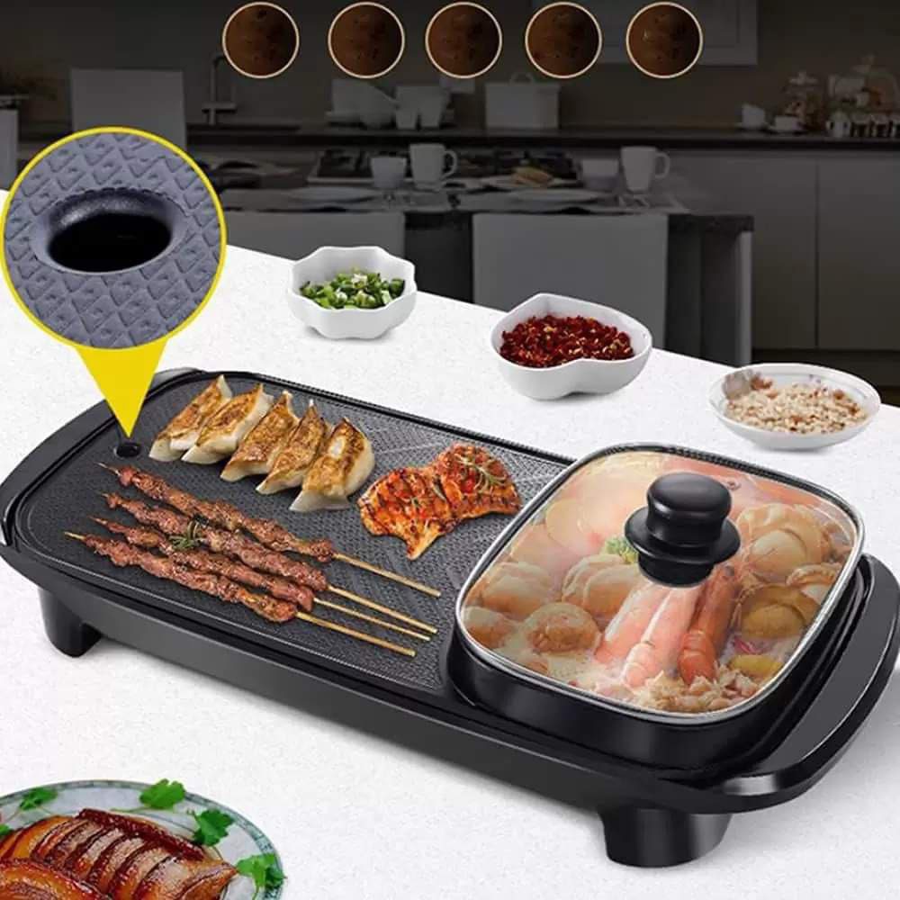 هوت بوت مع شواية 2 في 1 هيخلّيكي تعملي الشوربة أو السلق في نفس الوقت اللي بتشوي فيه اللحوم أو الفراخ أو الخضار… وكل ده بسرعة وكفاءة عالية 👌✨